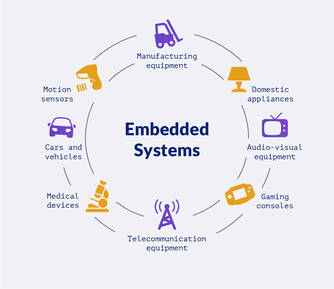 - Hardware Components: Microcontrollers, processors, sensors, actuators, and interfaces.